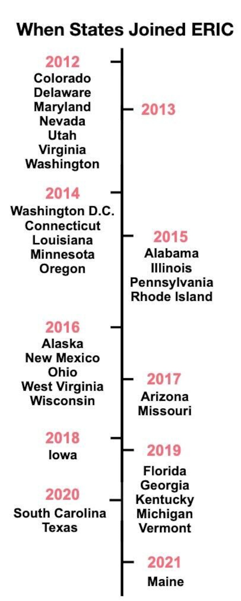 Most states did not have statewide voter rolls at all until after the passage of the Help America Vote Act of 2002, which required states to develop computerized and centralized lists. Many states had previously kept individual local lists rather than one statewide list and painstakingly (or, more often, poorly) coordinated between counties to clean them. HAVA also came with requirements to keep these lists up to date, and ERIC is used by its member states to adhere to this provision of the law.