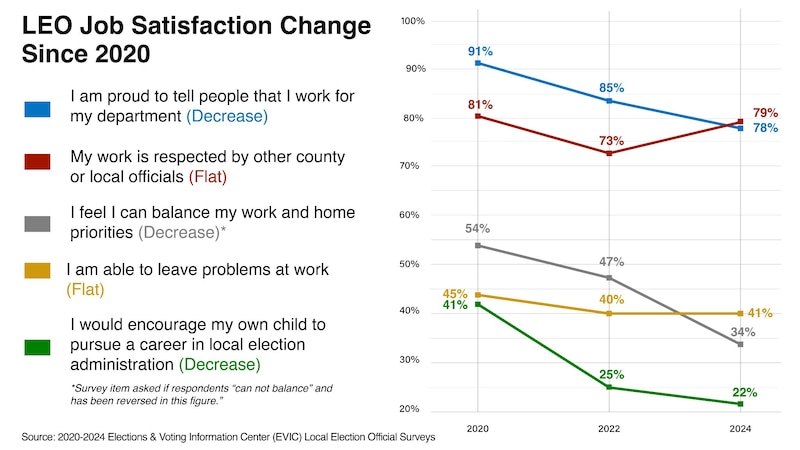 “There are still a lot of cracks in the system, and if things had been closer we would have seen a different reaction,” said Paul Manson, EVIC research director and research assistant professor at Portland State University in Oregon. “Job satisfaction hasn’t gone up — underneath the hood, the people who run elections are still nervous.”