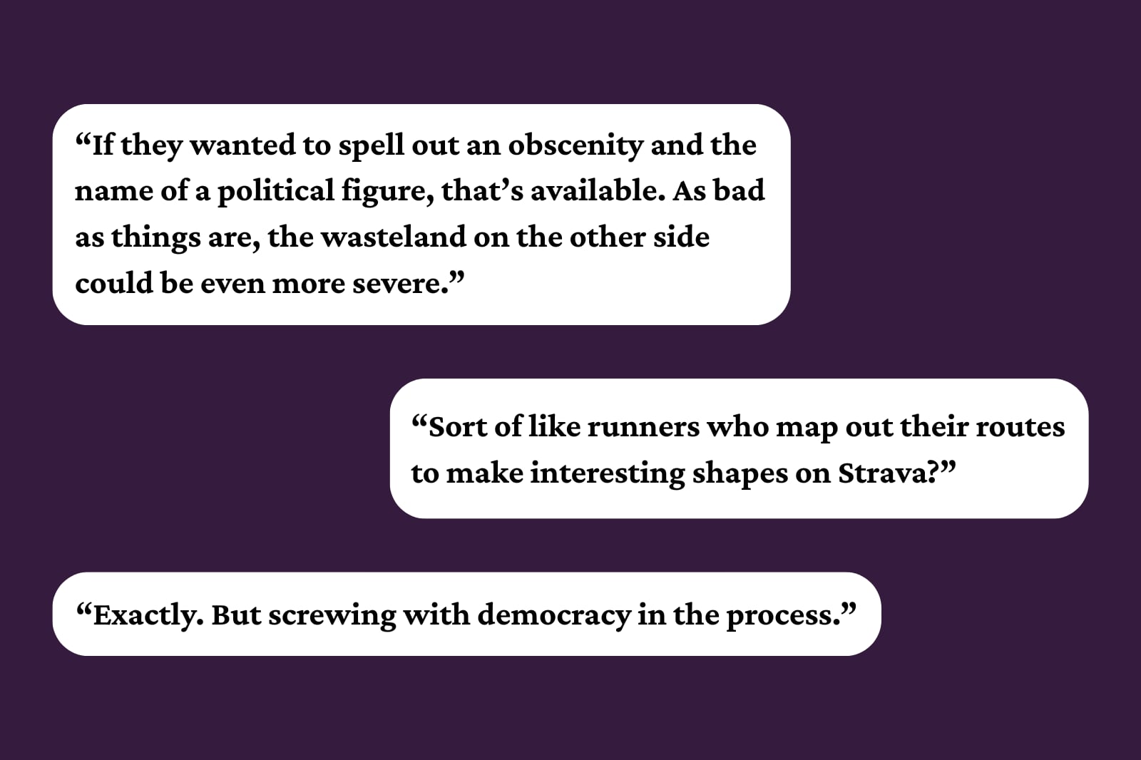 Nathaniel Rakich: Wowzer. I mean, I think most people would agree something like non-contiguous districts are beyond the pale. Do you think that kind of thing could actually impel Congress or the Supreme Court to step in?