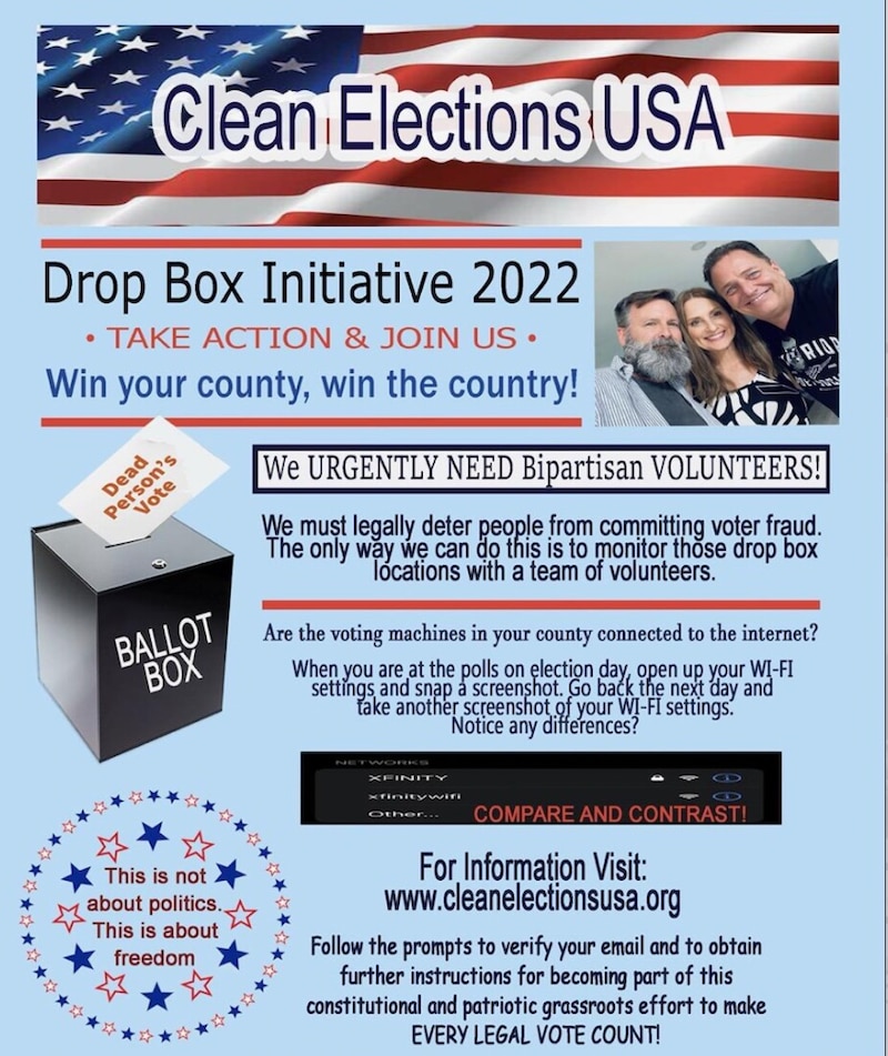 Part of the mission, along with attempting to “catch the cheaters” is to “deter people from committing voter fraud” by collecting others’ ballots in the first place, according to a Clean Elections USA flyer posted by Jennings on Truth Social, because voters know people will be watching the drop boxes. But people can mail ballots in from any mailbox in the U.S., so it’s unclear why the backers of the group think drop box surveillance would defeat such an effort.