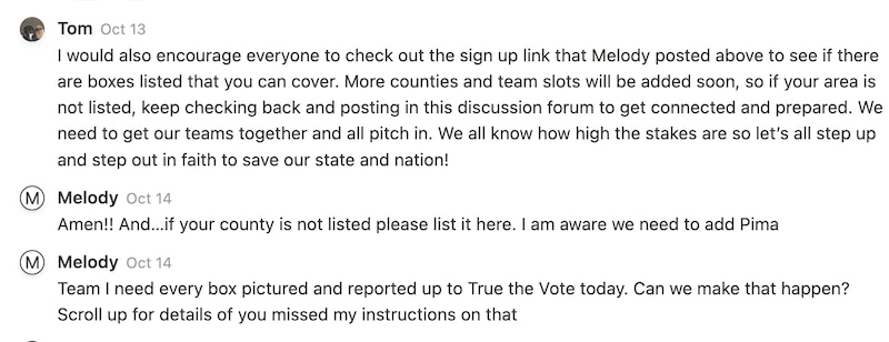 Volunteers for Clean Elections USA began discussing their plan to monitor drop boxes in Arizona on the online forum on August 10.