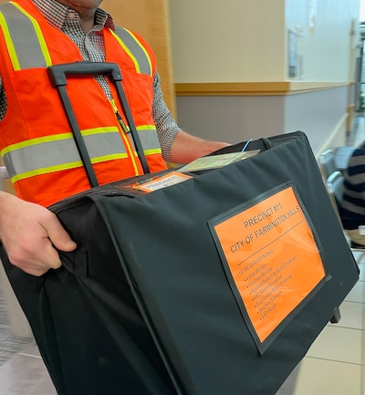In Troy, workers from the Oakland County Clerk’s office brought in storage containers, resembling suitcases, full of ballots from 95 precincts to start the recount at 8 a.m. “Recountable,” workers announced from some of the 100 counting tables as they checked the security of a ballot container and matched the ID numbers on its security seal with the number written in the poll book on Election Day, all part of the measures to ensure a precinct is eligible for the recount. Officials determined five precincts were ineligible for recount for such reasons — not enough to change the outcomes of Oakland’s final count, according to Oakland County Clerk Lisa Brown.