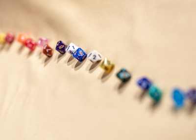 A person approaches the table and picks up a 10-sided die. She rolls.