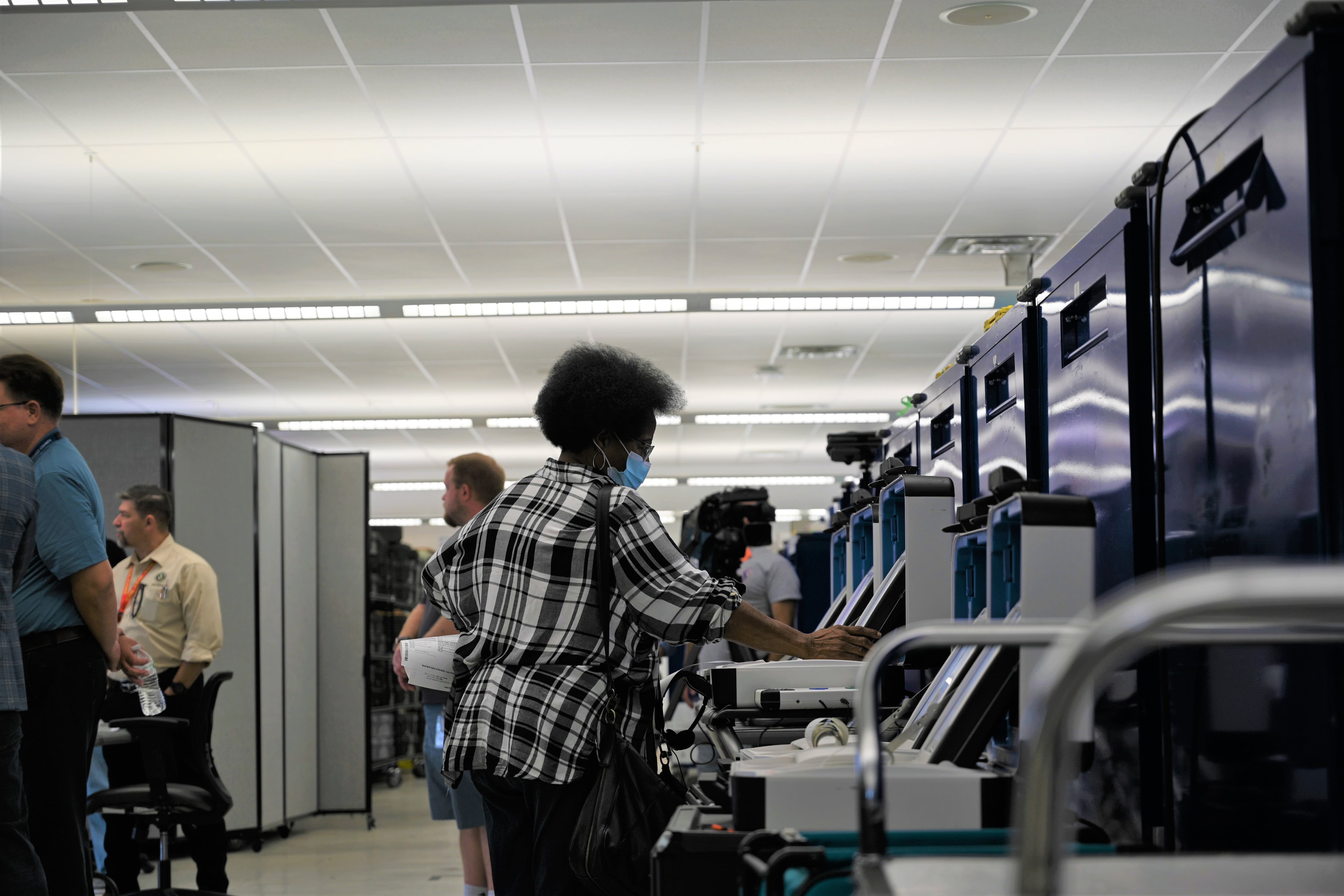 As staff conducted the public test near the back of the Tarrant County Elections Administration warehouse, the rest of the building was still full of staff, finishing up the more comprehensive, state-mandated logic and accuracy test.